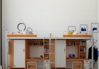 宿舍公寓床因空間利用率大,美觀實用而一直受到學校和員工宿舍的歡迎,那么宿舍公寓床有哪些配置方案呢,今天就來給大家介紹一下。四人間宿舍公寓床配置方案可選擇兩連體宿舍公寓床,有中梯和側梯兩種形式,側梯節(jié)省空間,適用于房間寬度有限的情況,性價比高。中梯學生上下樓更為方便省力,但要有足夠的縱深。