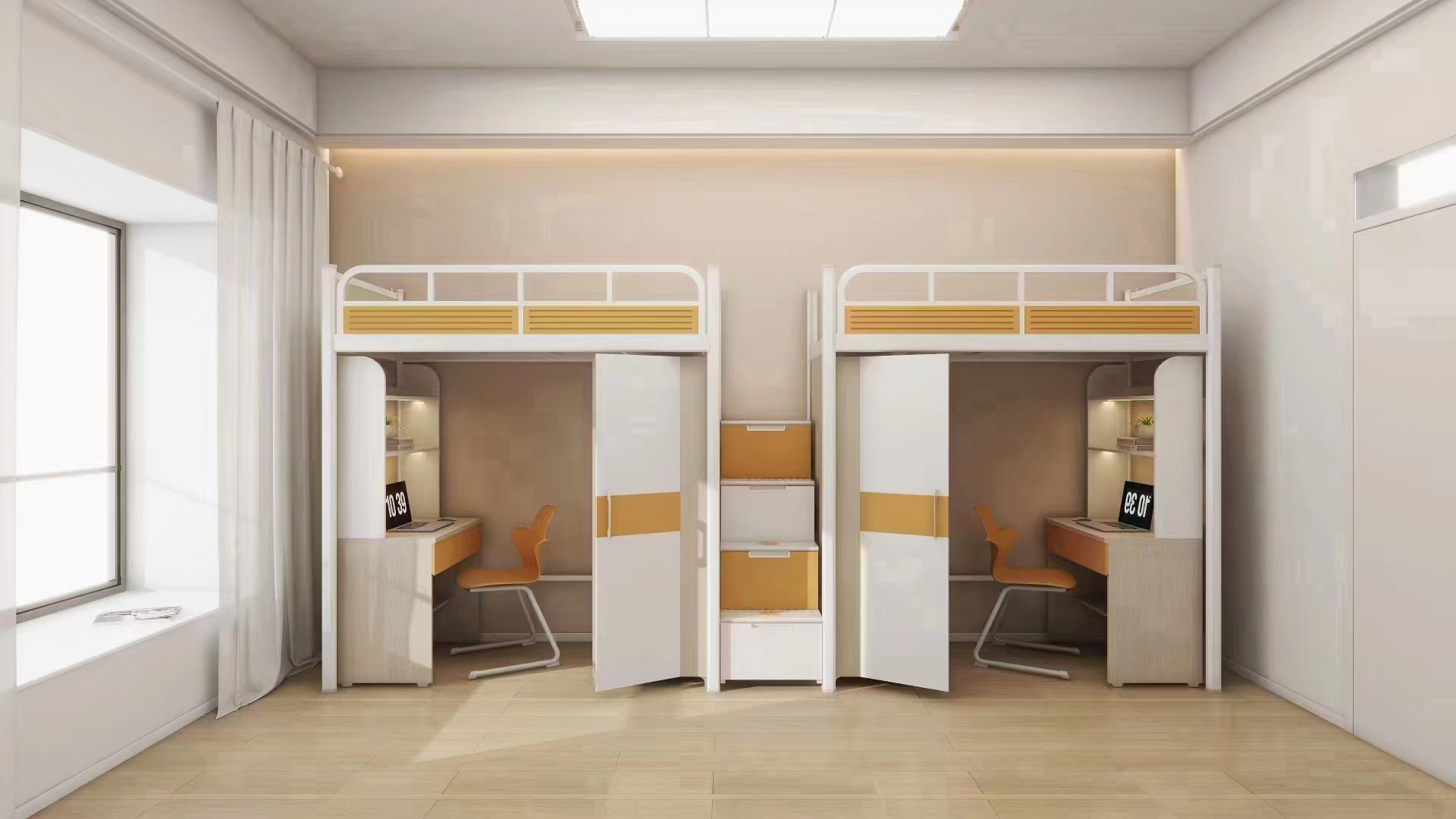 從安全角度來(lái)看,版式公寓床同樣表現(xiàn)出色。床體的邊角經(jīng)過(guò)精心打磨處理,圓潤(rùn)光滑,有效避免了磕碰受傷的風(fēng)險(xiǎn)。穩(wěn)固的結(jié)構(gòu)設(shè)計(jì),確保在使用過(guò)程中不會(huì)搖晃或發(fā)出噪音,讓您無(wú)論是翻身還是上下床,都能感到安心。同時(shí),床梯的設(shè)計(jì)也十分人性化,合理的間距和防滑踏板,讓您上下床更加便捷、安全。