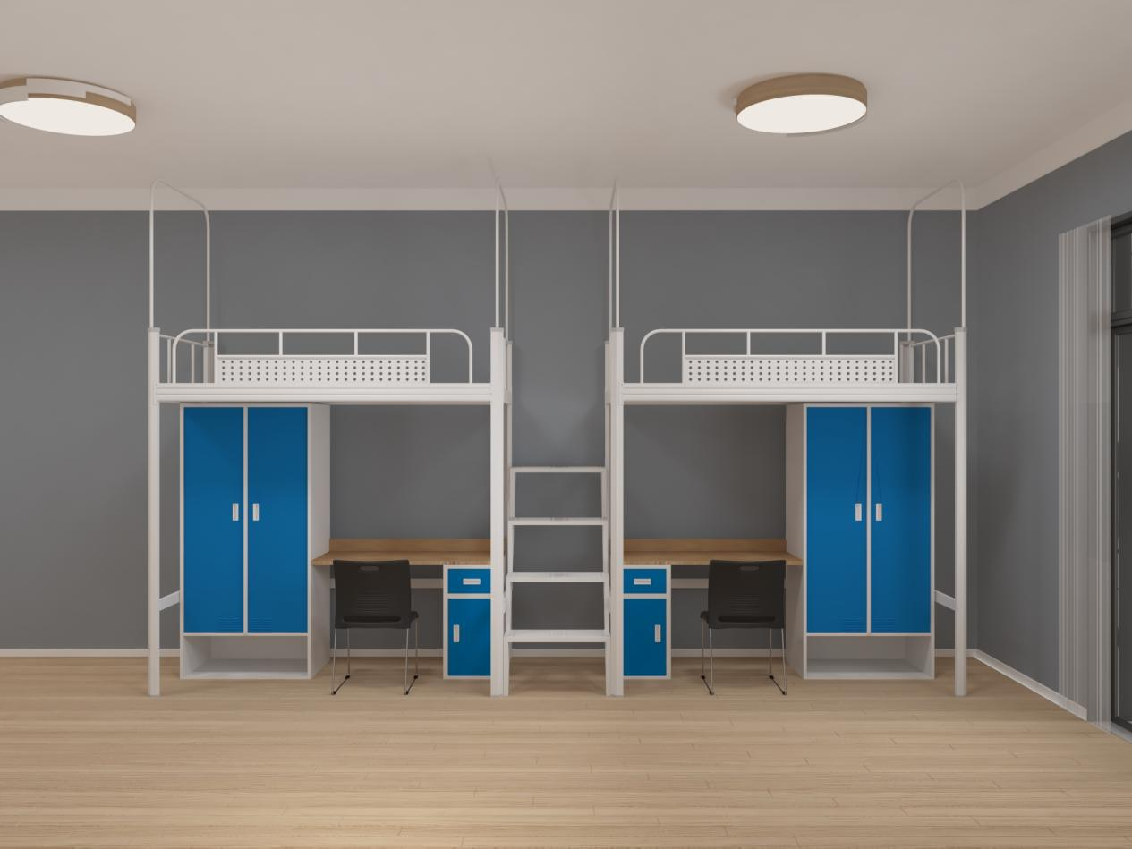隱形加固防護欄:上層床沿的防護欄采用嵌入式設計,既不會硌到身體,又能有效防止夜間翻身墜落,護欄高度符合國家宿舍家具安全標準。